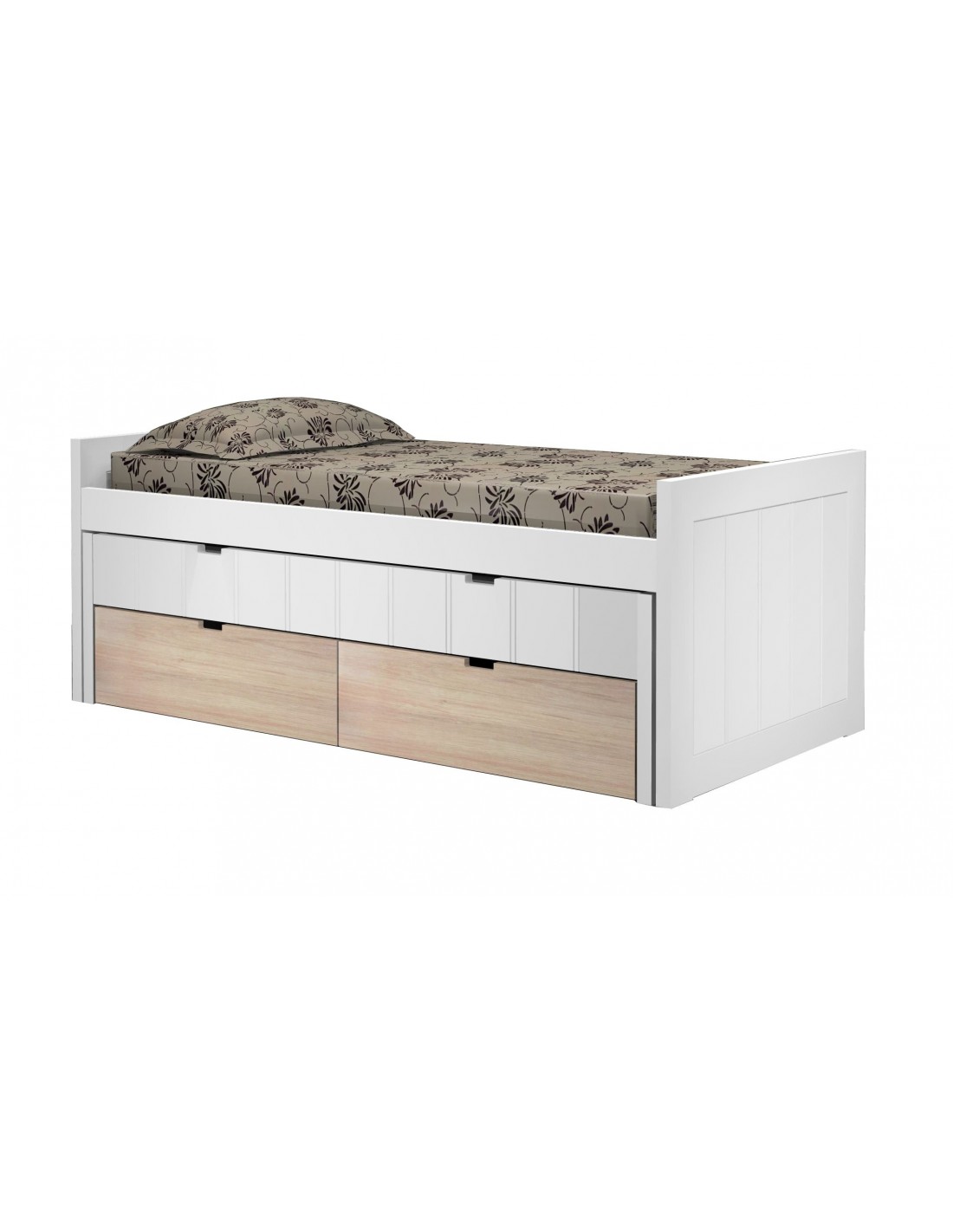 Compacto Bi-cama con 2 camas, 2 cajoneras en varios acabados y estructura protectora.